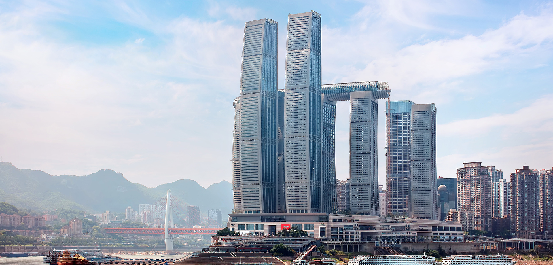 建筑高度:250 m(56層) 幕墻面積:15.3萬m2 項(xiàng)目設(shè)計(jì):薩夫迪建筑設(shè)計(jì)事務(wù)所、重慶市設(shè)計(jì)院 幕墻類型:新型單元式幕墻、石材幕墻 、金屬板幕墻等