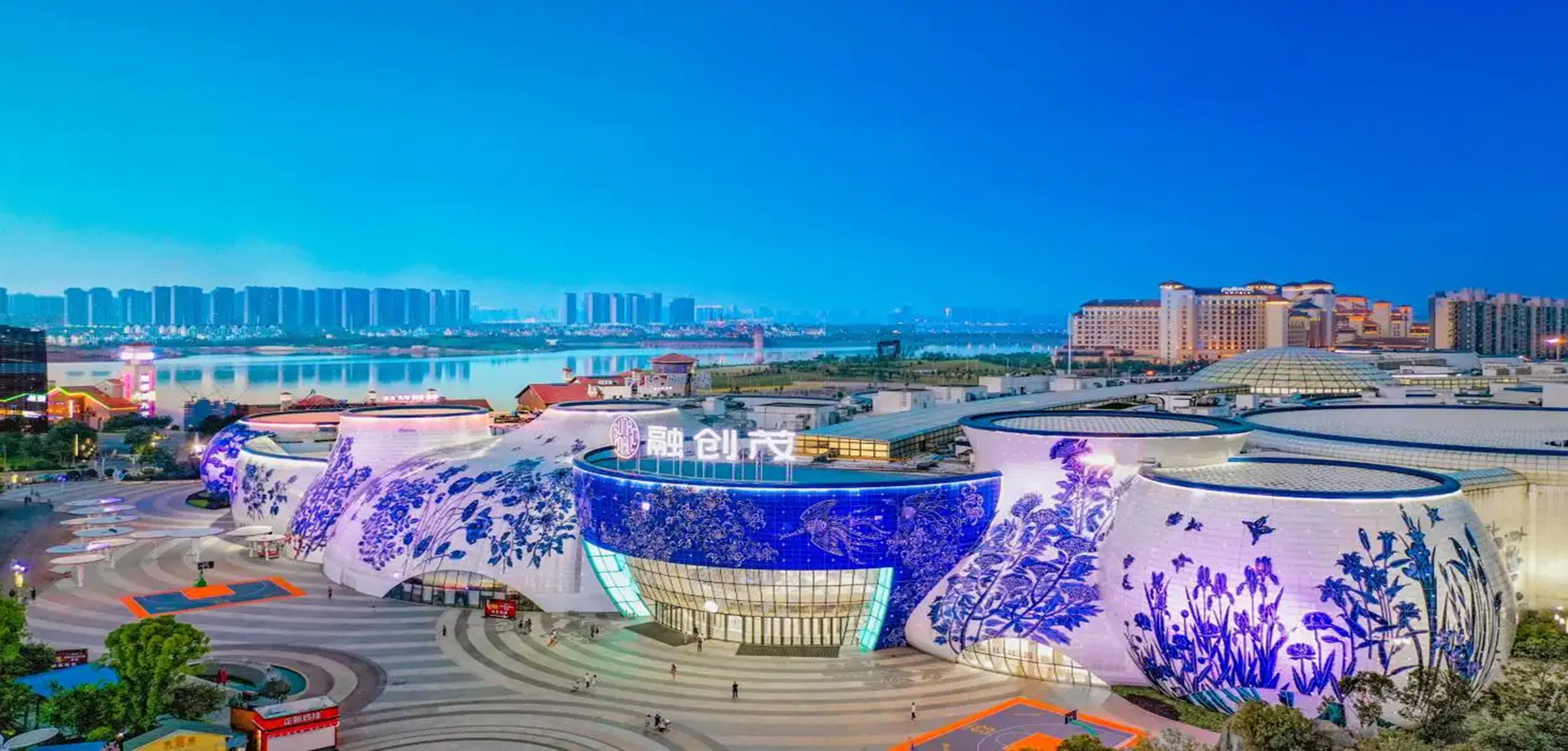 位于南昌市紅谷灘區(qū)南龍蟠街666號,總建筑面積約20萬方。南昌融創(chuàng)茂即融創(chuàng)文化旅游城,總投超過400億元人民幣?!按晌幕北灰暈橼M鄱文化的經(jīng)典代表,融創(chuàng)文化旅游城便是對瓷文化的完美演繹,核心區(qū)建筑為“九龍青花”的華麗造型。采用高耐厚混色“青花瓷”鋁板,可確保亮麗的“九龍青花”在多年日曬雨淋之下不褪色、不粉化。