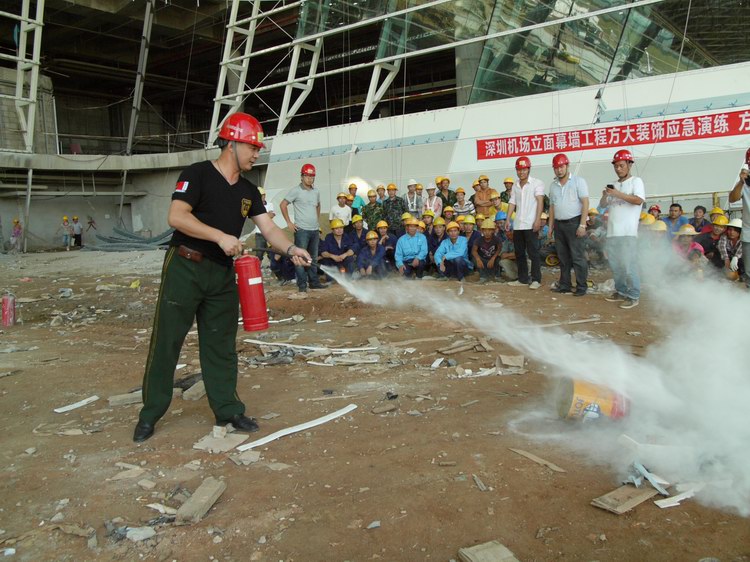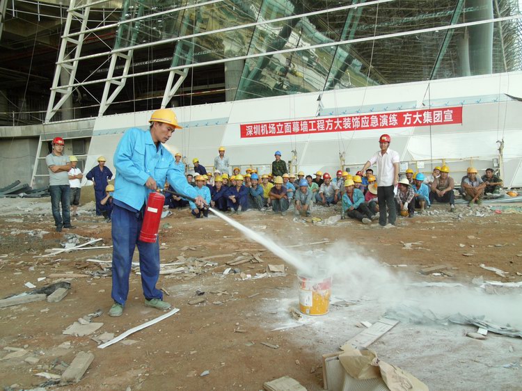 7月3日下午,為了檢驗今年全國“安全生產(chǎn)月”的成果和深圳機(jī)場T3航站樓幕墻工程項目的安全生產(chǎn)應(yīng)急能力,方大集團(tuán)、深圳市方大裝飾工程有限公司組織開展了為期半天的幕墻施工防火、防高墜、防坍塌安全事故應(yīng)急演練。集團(tuán)公司安全主管尚清波、裝飾公司安全部經(jīng)理丁志剛、T3航站樓項目部副經(jīng)理高晶參與現(xiàn)場演練組織指揮。這次安全應(yīng)急演練,檢驗了現(xiàn)場管理和施工人員面對緊急情況的應(yīng)急處置能力和水平,提高了大家的安全應(yīng)急意識和水準(zhǔn),整個演練過程銜接到位,收到了良好的預(yù)期效果。