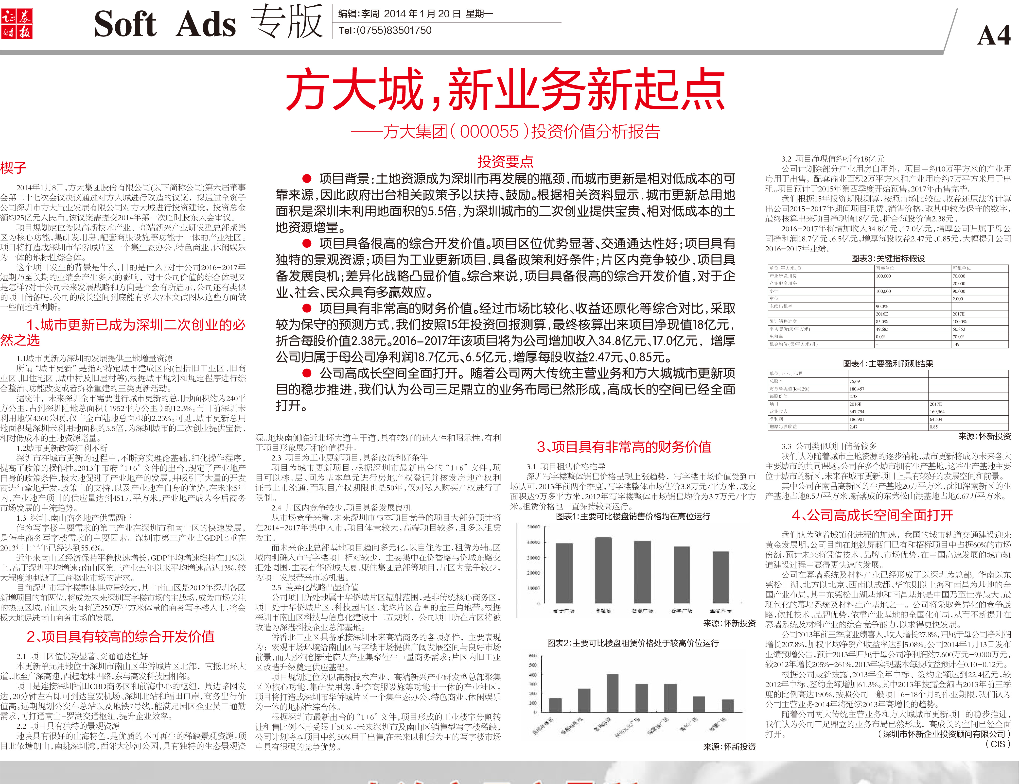 2014年1月20日《證券時(shí)報(bào)》專版大幅刊登《方大城,新業(yè)務(wù)新起點(diǎn)——方大集團(tuán)投資價(jià)值分析報(bào)告》