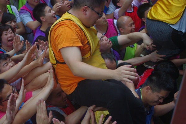 “團(tuán)隊(duì)動(dòng)力圈”和“畢業(yè)墻”科目帶給我們更多的是震撼、擔(dān)當(dāng)和感動(dòng)。“一個(gè)都不能少”這是學(xué)員在分享中提到的,團(tuán)隊(duì)離不開個(gè)人,個(gè)人更需要團(tuán)隊(duì)強(qiáng)大的力量支持。“讓我來撐起你”這是一種責(zé)任和承諾,“謝謝你們讓我當(dāng)墩子”這是互相的信任和支持,“我的后背都交給你,來吧”、“你去休息換我來”、“注意安全”、“保護(hù)保護(hù)”……感動(dòng)我們的是一句句承諾和信任,是一雙雙保持45度向上姿勢的手掌,是一個(gè)個(gè)泛紅的眼圈,我們奉獻(xiàn)于團(tuán)隊(duì),我為我的團(tuán)隊(duì)感到驕傲和自豪。