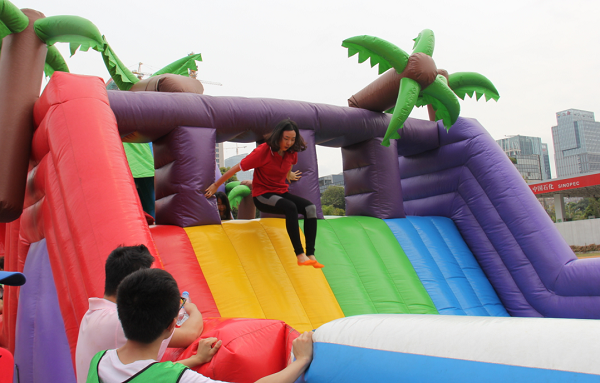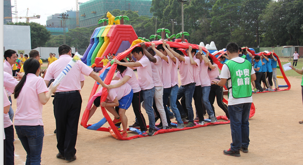 本次運(yùn)動(dòng)會(huì)共設(shè)置夢(mèng)想起航、齊心協(xié)力、托起明天的太陽(yáng)、編織夢(mèng)想、智勇大沖關(guān)、拔河6個(gè)趣味項(xiàng)目。這些項(xiàng)目的突出特點(diǎn)就是強(qiáng)調(diào)團(tuán)隊(duì)配合能力。其中“齊心協(xié)力”要求每隊(duì)20名隊(duì)員通過(guò)手腳協(xié)調(diào)配合撥動(dòng)履帶向前進(jìn),非常講究技巧和團(tuán)隊(duì)配合。整個(gè)比賽各代表隊(duì)參賽的隊(duì)員們各顯其能,將自己的運(yùn)動(dòng)熱情完全揮灑了出來(lái),場(chǎng)面輕松快樂(lè)。最后,自動(dòng)化公司、深圳分公司、廈門分公司分獲團(tuán)體冠軍、亞軍、季軍。
