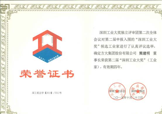 備受關(guān)注的第二屆“深圳工業(yè)大獎(jiǎng)”于11月26日在第四屆五洲工業(yè)發(fā)展論壇上隆重頒獎(jiǎng)。憑借在實(shí)體經(jīng)濟(jì)領(lǐng)域的綜合實(shí)力,方大集團(tuán)股份有限公司摘取第二屆“深圳工業(yè)大獎(jiǎng)”兩項(xiàng)殊榮:方大集團(tuán)榮獲企業(yè)獎(jiǎng),熊建明董事長榮獲工業(yè)家獎(jiǎng)。