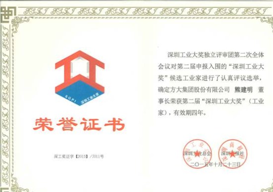 20多年來,方大集團(tuán)在熊建明董事長的帶領(lǐng)下,始終走實(shí)業(yè)化道路,以“創(chuàng)一流企業(yè)、創(chuàng)一流產(chǎn)品、創(chuàng)一流服務(wù)”為目標(biāo),堅(jiān)持“科技為本,創(chuàng)新為源”的經(jīng)營理念,大力實(shí)施科技創(chuàng)新,勇于樹立行業(yè)標(biāo)桿,成為我國節(jié)能幕墻、新能源、地鐵屏蔽門、半導(dǎo)體照明(LED)等領(lǐng)域的領(lǐng)軍企業(yè),對(duì)我國建筑幕墻、太陽能光伏、地鐵屏蔽門、半導(dǎo)體照明(LED)及相關(guān)鏈條產(chǎn)業(yè)的興起和健康發(fā)展起到了重要的推動(dòng)作用,為振興國家工業(yè)、發(fā)展實(shí)體經(jīng)濟(jì)做出了貢獻(xiàn),先后榮獲“中國工業(yè)行業(yè)狀元”、“中國工業(yè)行業(yè)排頭兵企業(yè)”等榮譽(yù),此次摘取“深圳工業(yè)大獎(jiǎng)”兩項(xiàng)殊榮是業(yè)界對(duì)熊建明董事長領(lǐng)導(dǎo)下的方大集團(tuán)在工業(yè)領(lǐng)域所做貢獻(xiàn)的又一肯定。