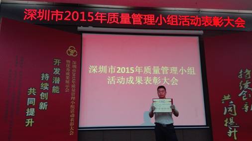 深圳市2015年質(zhì)量管理小組活動優(yōu)秀成果、優(yōu)秀企業(yè)和先進(jìn)個(gè)人獎是由深圳市質(zhì)量協(xié)會、深圳市總工會、共青團(tuán)深圳市委員會、深圳市婦女聯(lián)合會和深圳市科技技術(shù)協(xié)會聯(lián)合審定,旨在表彰在2015年深圳市質(zhì)量管理小組活動中涌現(xiàn)出的優(yōu)秀企業(yè)、QC小組和個(gè)人。