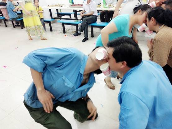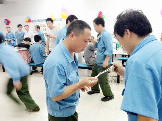 在員工享用美食與水果的同時,當晚現(xiàn)場進行了踩氣球、夾傳瓜子與紙杯傳水三輪游戲,每個游戲都由壽星們自由組隊參與。第一個游戲“踩氣球”,兩人三足需要高度的協(xié)調與配合,為了躲避對手突襲,壽星們上躥下跳,左右擺動,動作滑稽,惹得全場哄堂大笑;第二個游戲“夾傳瓜子”,大家爭分奪秒往下一位隊友手中輸送瓜子,在輸送的過程中如果瓜子不慎掉落只好重新開始,在圍觀人員的助威吶喊聲中,壽星們加快步伐只為成功夾傳更多的瓜子;最后一個游戲“紙杯傳水”,要求選手們動作謹慎且快,配合度高,為把紙杯的水倒入隊友的紙杯中時能夠滴水不漏,大家的傳輸POSE千奇百怪,笑料百出,現(xiàn)場一片歡聲笑語。