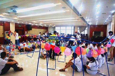 最后,活動要求每組把自己所搭接的過山車模型連接起來,實現(xiàn)籃球在各個軌道中的連續(xù)滾動。這一個個相連的軌道就像是一個完整的生命樹系統(tǒng),通過一個籃球的滾動實現(xiàn)了彼此的連接,成就了共同的目標(biāo)與價值。這也正像建科集團(tuán)的各個團(tuán)隊通過各自團(tuán)隊員工的認(rèn)真負(fù)責(zé),努力完成本團(tuán)隊任務(wù),進(jìn)而通過各團(tuán)隊的相互配合與連接實現(xiàn)集團(tuán)共同的目標(biāo)。