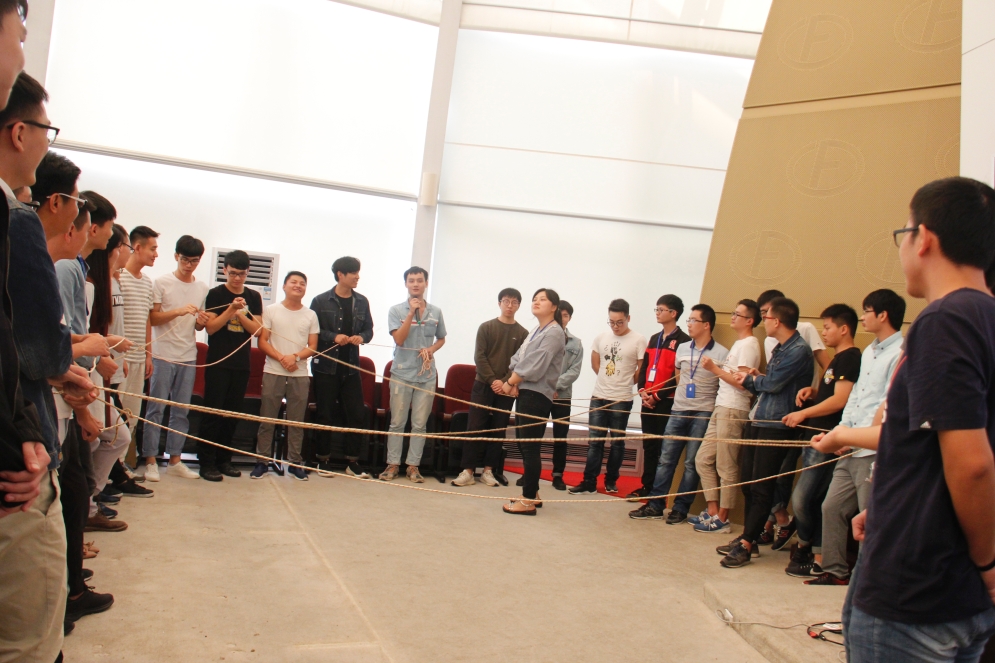 畢業(yè)生們拉繩圍圈,依次分享工作學習收獲并提出建議