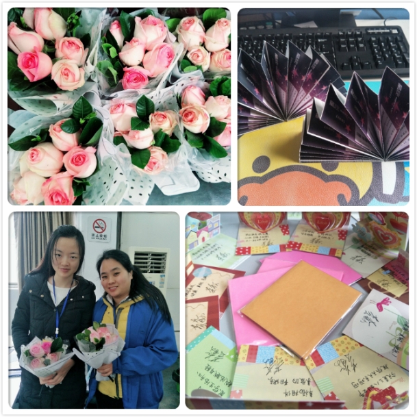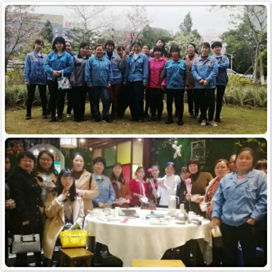 在東莞,因生產較忙,女員工們放棄休息,自愿在崗工作。東莞公司為女員工們準備的精致的禮物,晚上以一頓豐盛的晚餐慶祝此次“女神節(jié)”活動。