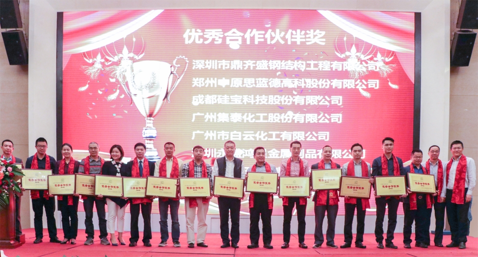 答謝會(huì)同時(shí)舉行了優(yōu)秀合作伙伴頒獎(jiǎng)典禮,表彰了2017年度在質(zhì)量、技術(shù)、服務(wù)等方面做出杰出貢獻(xiàn)的合作伙伴,江門耀皮工程玻璃有限公司等十五家企業(yè)榮獲優(yōu)秀合作伙伴獎(jiǎng)。