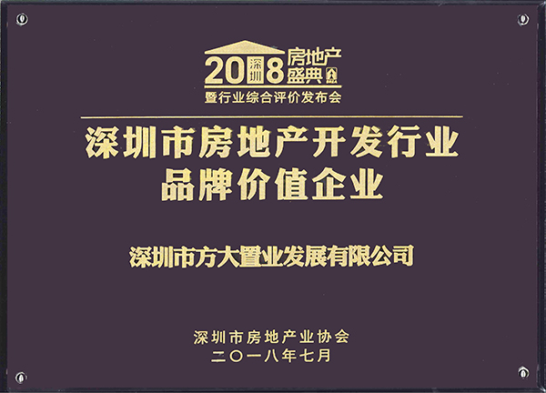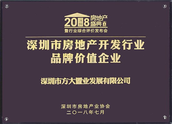 7月10日,第八屆深圳房地產(chǎn)盛典暨行業(yè)綜合評價發(fā)布會舉行,公布了2018綜合評價結(jié)果,方大置業(yè)公司獲評“深圳市房地產(chǎn)開發(fā)行業(yè)品牌價值企業(yè)”。
