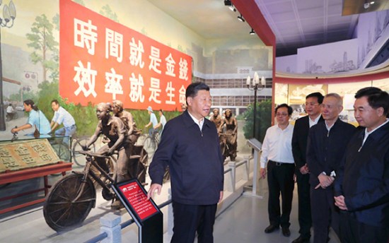10月24日,中共中央總書記、國家主席、中央軍委主席習(xí)近平來到深圳市福田區(qū),在深圳市當(dāng)代藝術(shù)館與城市規(guī)劃展覽館參觀了“大潮起珠江——廣東改革開放40周年展覽”。隨后又前往深圳前??疾欤瑓⒂^了深圳市萬科前海企業(yè)公館展覽廳。