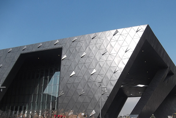深圳市當(dāng)代藝術(shù)館與城市規(guī)劃展覽館坐落于深圳中心區(qū)中軸線上,是中心區(qū)最后一個大型公共文化建筑,總建筑面積約8萬平方米。作為推廣新銳藝術(shù)、展示城市的新地標(biāo),該建筑以柔和的空間造型和藝術(shù)形象引起了廣泛的關(guān)注。該項目采用了大量的三角形玻璃幕墻及三角形穿孔不銹鋼+玻璃的雙層幕墻,實現(xiàn)了外立面傾斜、扭曲和旋轉(zhuǎn)的曲面變化,在確保最佳的采光效果同時,兼顧了遮陽、亮化等功能性需要,極富想象力和生命力,但也對幕墻平整度、施工精細(xì)度等帶來極大的挑戰(zhàn)。方大建科的工匠們,克服了幕墻形式復(fù)雜、材料品種規(guī)格多、施工精度高等種種困難,打造了這座兼具美感和功能性的“表皮”。