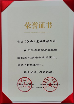8月20日,由江西省文明辦、省民政廳、省衛(wèi)健委、省扶貧辦、省工商聯(lián)、省紅十字會(huì)共同主辦的紀(jì)念世界人道主義日暨2020贛鄱愛(ài)心榜樣發(fā)布會(huì)在南昌舉行。方大集團(tuán)旗下子公司方大智創(chuàng)科技有限公司榮獲“2020贛鄱助力阿克陶脫貧攻堅(jiān)榜樣集體”榮譽(yù),方大置地(江西)有限公司榮獲“2020年新冠疫情肺炎疫情防控愛(ài)心榜樣集體”榮譽(yù)。