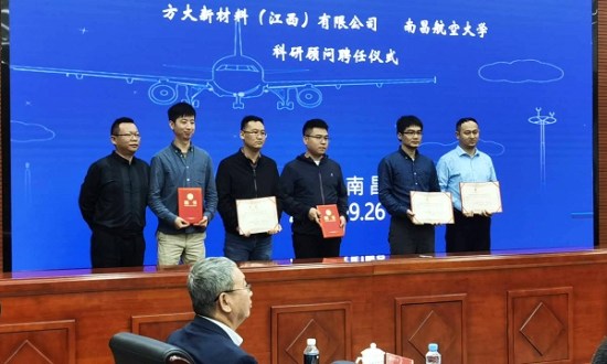 方大江西新材向南昌航空大學(xué)科研合作人員頒發(fā)科研顧問(wèn)聘任證書(shū)