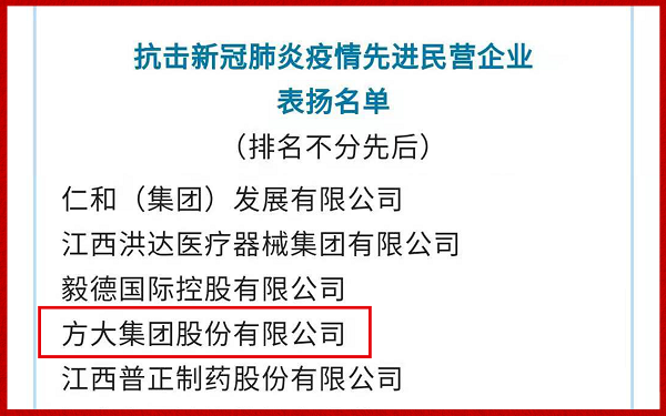 近日,中華全國(guó)工商業(yè)聯(lián)合會(huì)發(fā)布《全國(guó)工商聯(lián)關(guān)于對(duì)抗擊新冠肺炎疫情做出優(yōu)異成績(jī)的先進(jìn)民營(yíng)企業(yè)予以表揚(yáng)的通報(bào)》,對(duì)“抗擊新冠肺炎疫情先進(jìn)民營(yíng)企業(yè)”給予表揚(yáng),方大集團(tuán)榜上有名。