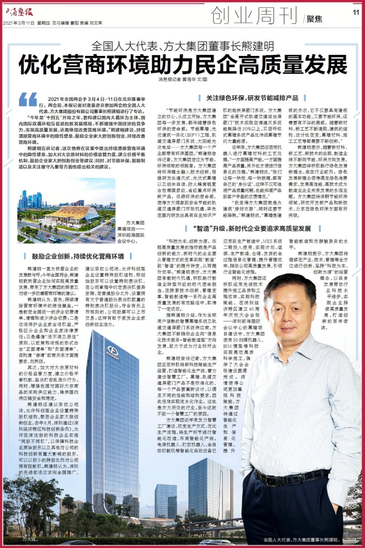 2021年全國兩會于3月4日-11日在北京隆重舉行。兩會前,本報(bào)記者對即將進(jìn)京參加兩會的全國人大代表、方大集團(tuán)股份有限公司董事長熊建明進(jìn)行了專訪。
